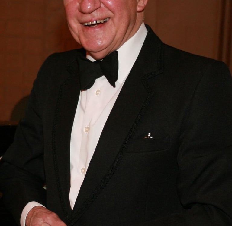 A further development was the rescoring for orchestra of some of the Polyphony Choir's organ accompaniments. The rescoring of his Mass, the lovely Prince of Peace, originally for organ (1962) and also included in our 50th anniversary concert, resulted from a very friendly concord with William Lloyd Webber (1914-1982), father of his perhaps better-known two sons Andrew and Julian. He was a cathedral-standard organist at the age of only fourteen, later taught at the Royal College of Music, and in 1964 became Director of the London College of Music. He vetted and gently suggested minor improvements to the orchestra's full-orchestra rescoring, and kindly came with his wife to its first performance, in 1982 with the Polyphony Choir in St George's Cathedral.