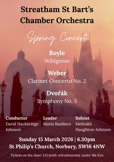 Following a well-attended Winter concert and a break for Christmas and the New Year celebrations, we are preparing for our Spring concert, to be held on Sunday 15 March at St Philip's Church, Beech Road, Norbury, SW16 4NW, starting at 6.30pm.